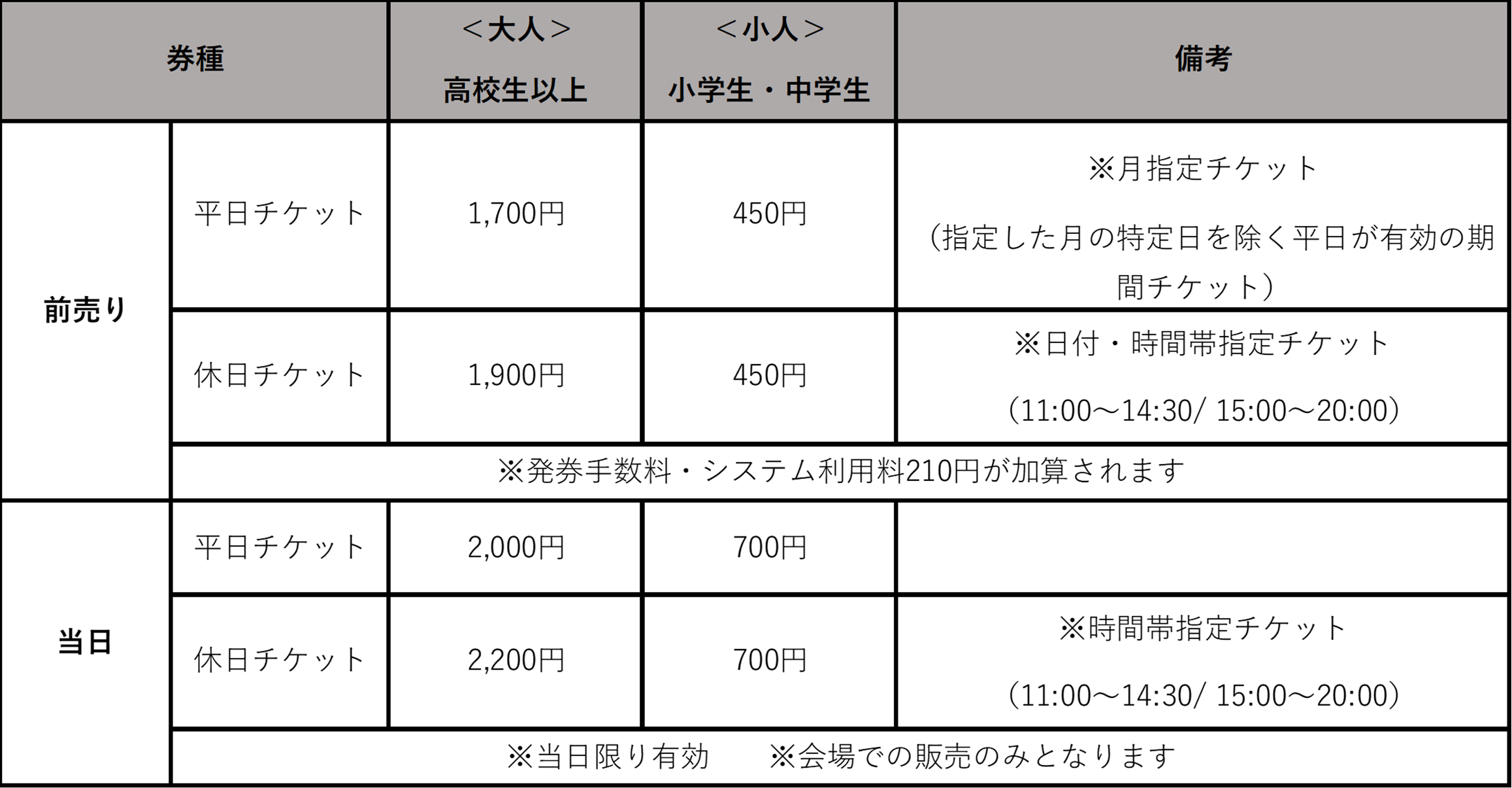 ※休日チケットは、土曜日・日曜日・祝日・休日および別途設定する特定日が対象となります