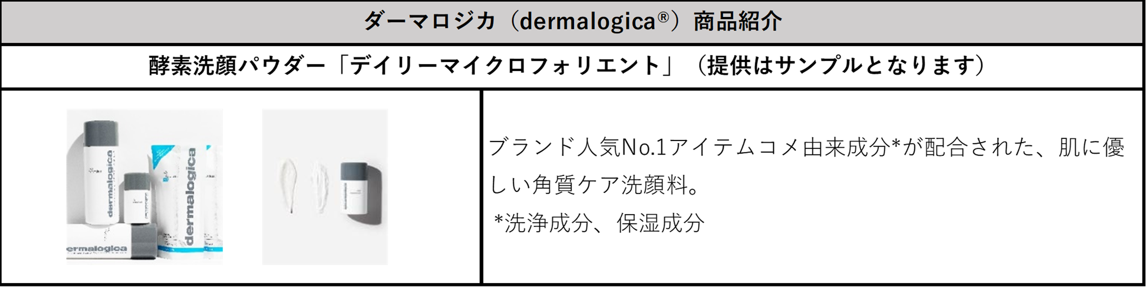 また毎日10名さまにスキンケアブランド『ダーマロジカ(dermalogica®)』の酵素洗顔パウダーサンプルが当たります。