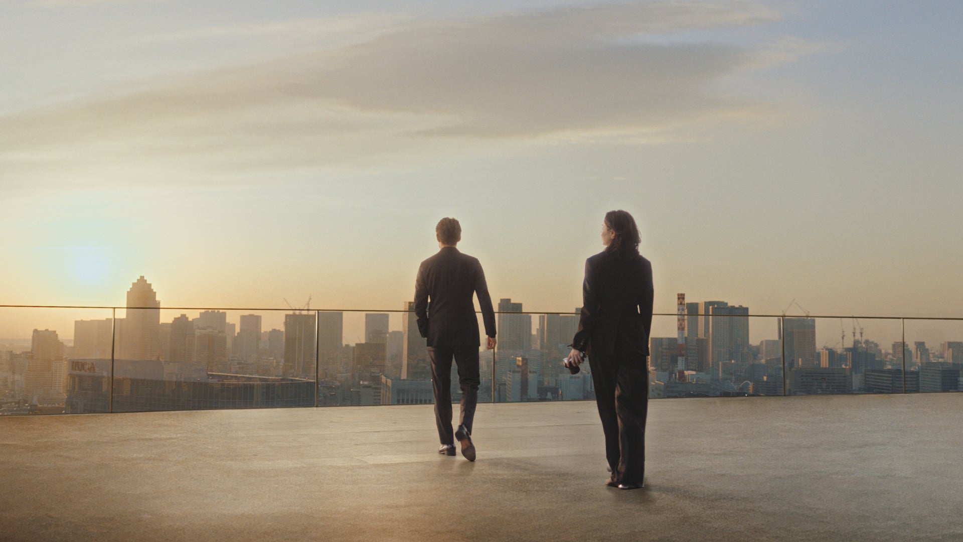 前作では抽象的な白い空間で、反町さんと松嶋さんが対面するシーンを描きましたが、今作では、シチュエーションを内から外へ、対面から動作へ、と展開。資生堂創業の地であり、時代の歩みを見つめ続けてきた銀座の街をドローンで映したカットからCMが始まります。そして、空と都市を望む屋上を舞台に、妻が夫の姿をカメラに収めるという設定とストーリーを通じて、反町さんと松嶋さんご夫婦の想いと関係性に、よりリアリティーを持たせて表現することにチャレンジしました。