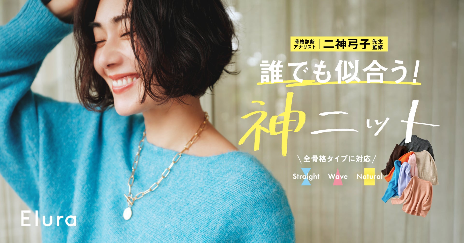 “大人女性の悩みに効く”Eluraから、骨格診断の創始者である二神弓子さん監修の全骨格タイプ対応の「誰でも似合う“神ニット”」が登場!