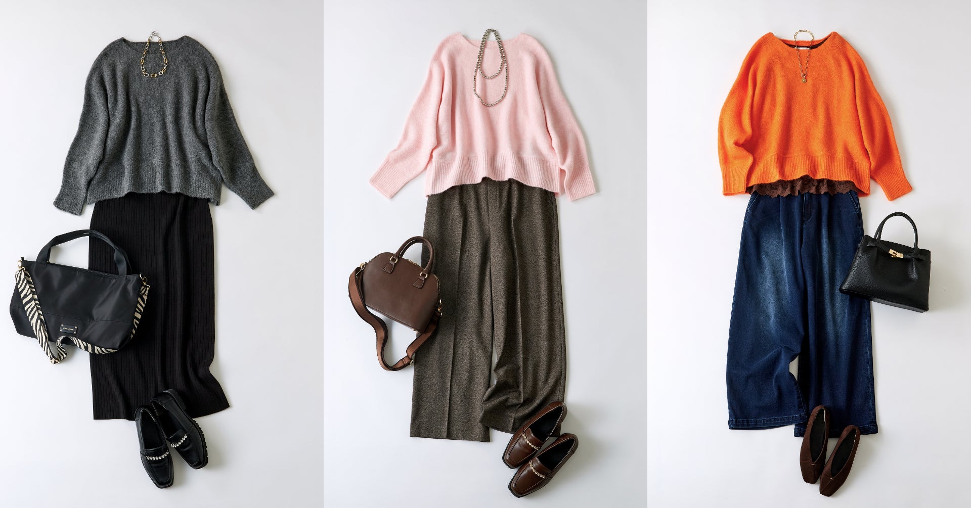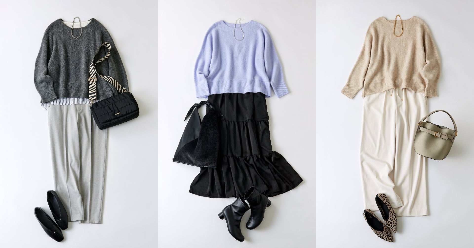 3つの骨格タイプそれぞれに似合う"素材感"にもこだわりを。厚み、ハリと柔らかさのバランス、落ち感、そして表面の風合いまで、どのタイプも美しく着こなせるニット素材を選びました。