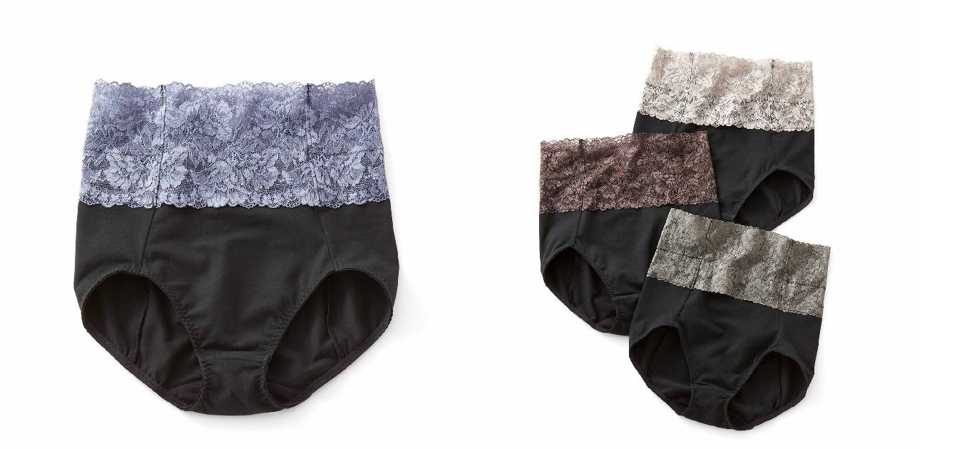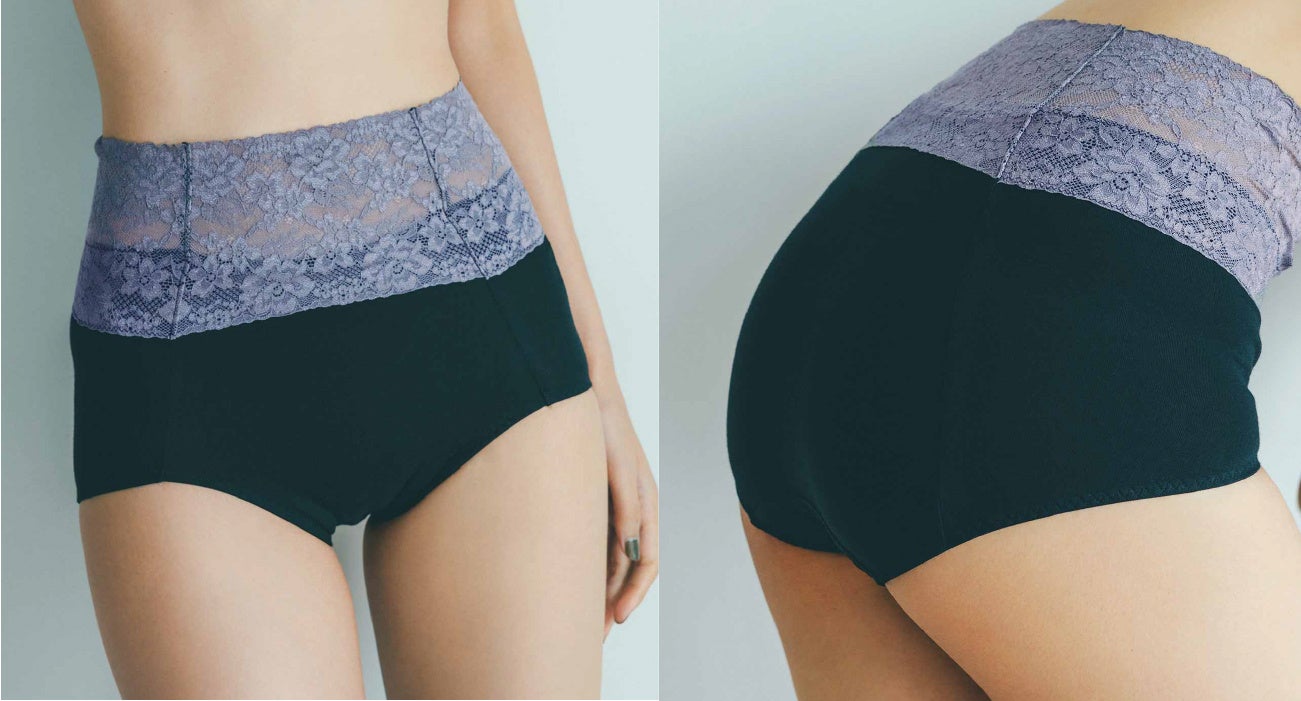 「はいてすぐはいいのに動くとずれる」悩みを解決するショーツです。ウエストの幅広レースと身生地を離したパターンにより、からだの動きにあわせて生地が常にフィットするので、ずれやすさを解消しています。