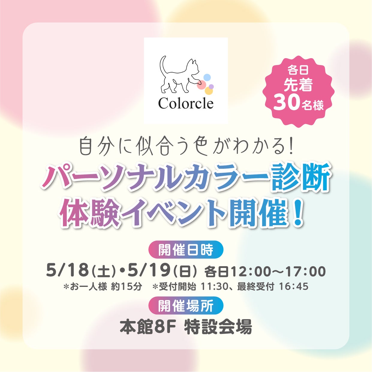 池袋PARCO館内で税込10,000円以上お買上げでSNS総フォロワー数約20万人のパーソナルカラー・骨格診断サロン「Colorcle」の約15分間の簡易的なパーソナルカラー診断が体験できます!