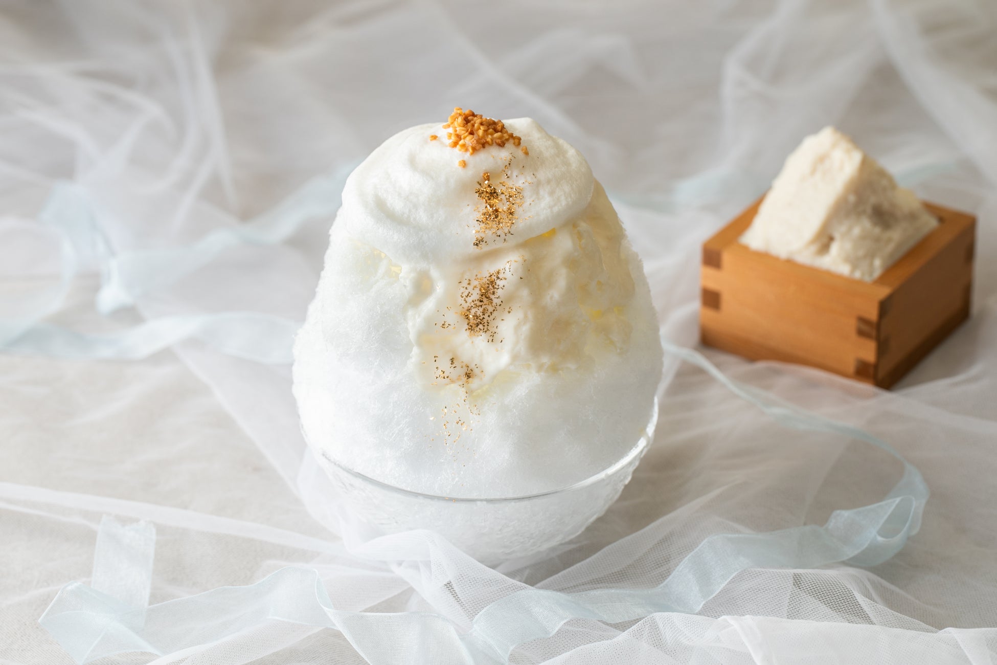 川越の地で愛され続ける「小江戸鏡山酒造」の酒粕を使用したかき氷。キャラメルで香ばしく味付けされたナッツや濃厚な酒粕とクリームチーズの酸味を組み合わせたソースとの相性も抜群。酒粕のまろやかな甘みが織りなす、奥深い味わいをお楽しみいただけます。