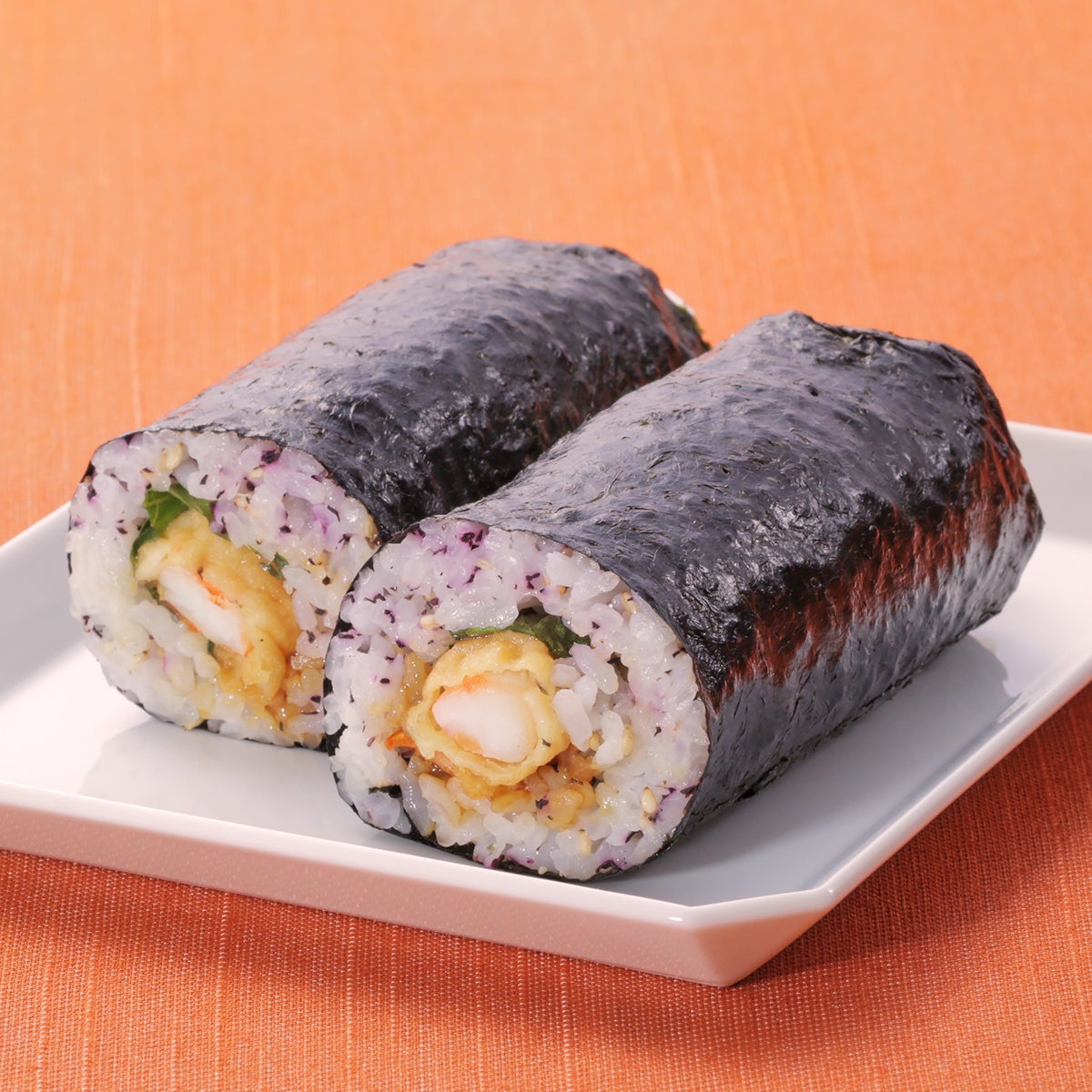 国産車えびとじっくり煮込んだ椎茸や干瓢、焼き穴子など8種類の具材を有明産焼のりで巻きました。