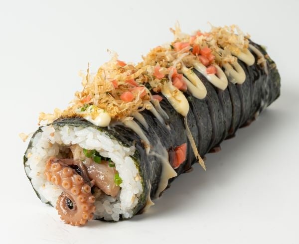 たこ焼き×恵方巻の今までなかったコラボ恵方巻!(ゆず酢飯に、海苔、たこ焼き、松葉だこ、