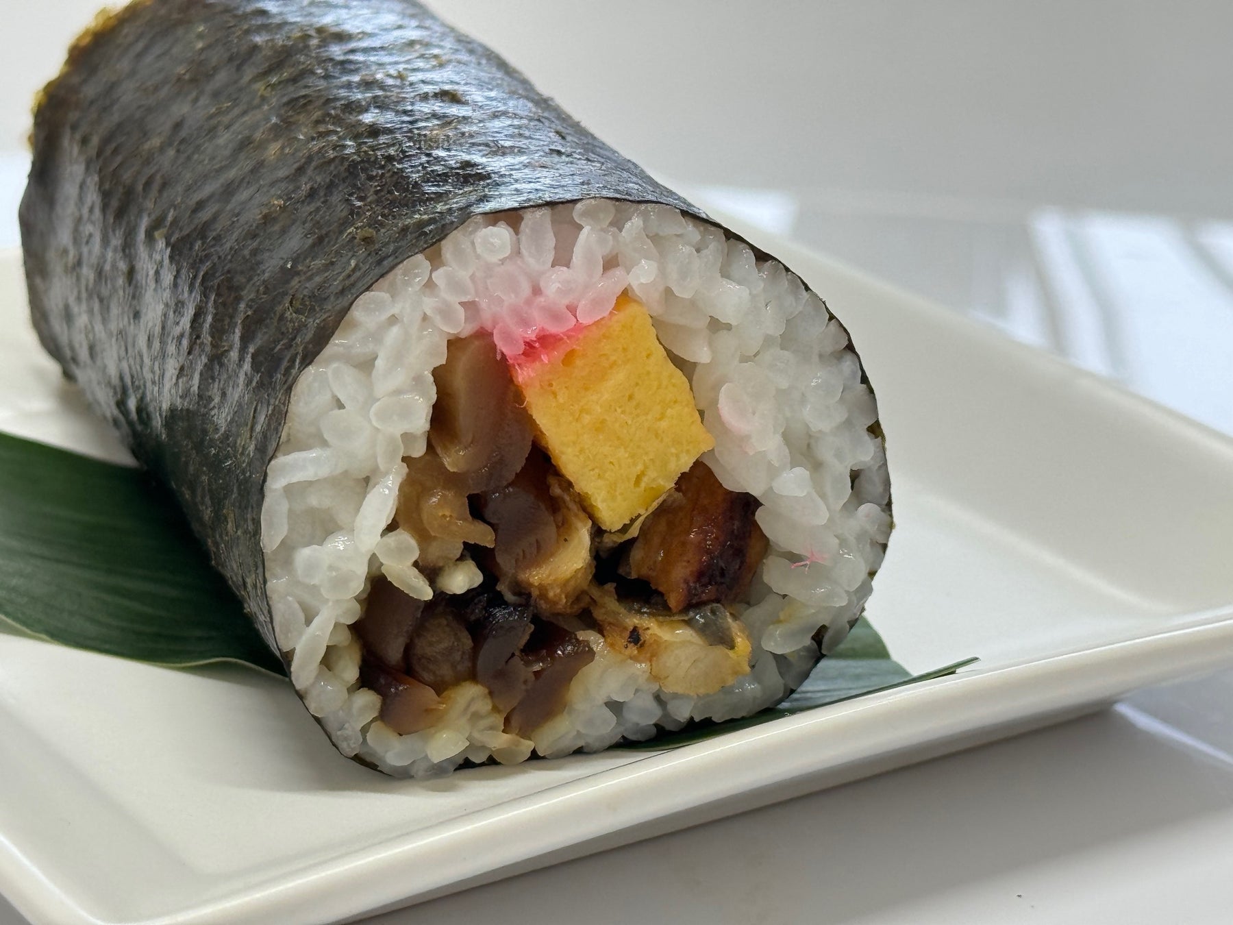 お魚専門店の香ばしく焼き上げた焼穴子に厚焼き玉子、しいたけなどを巻いた恵方巻です。