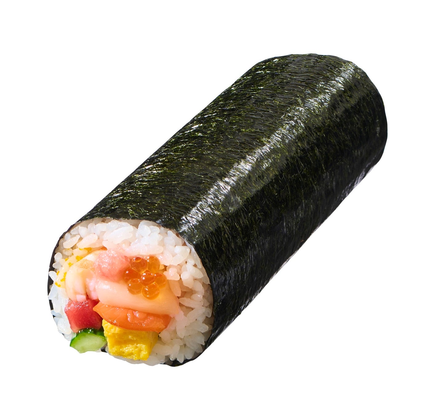 いか、まぐろ、サーモン、ほたて…具だくさんな定番の海鮮巻。