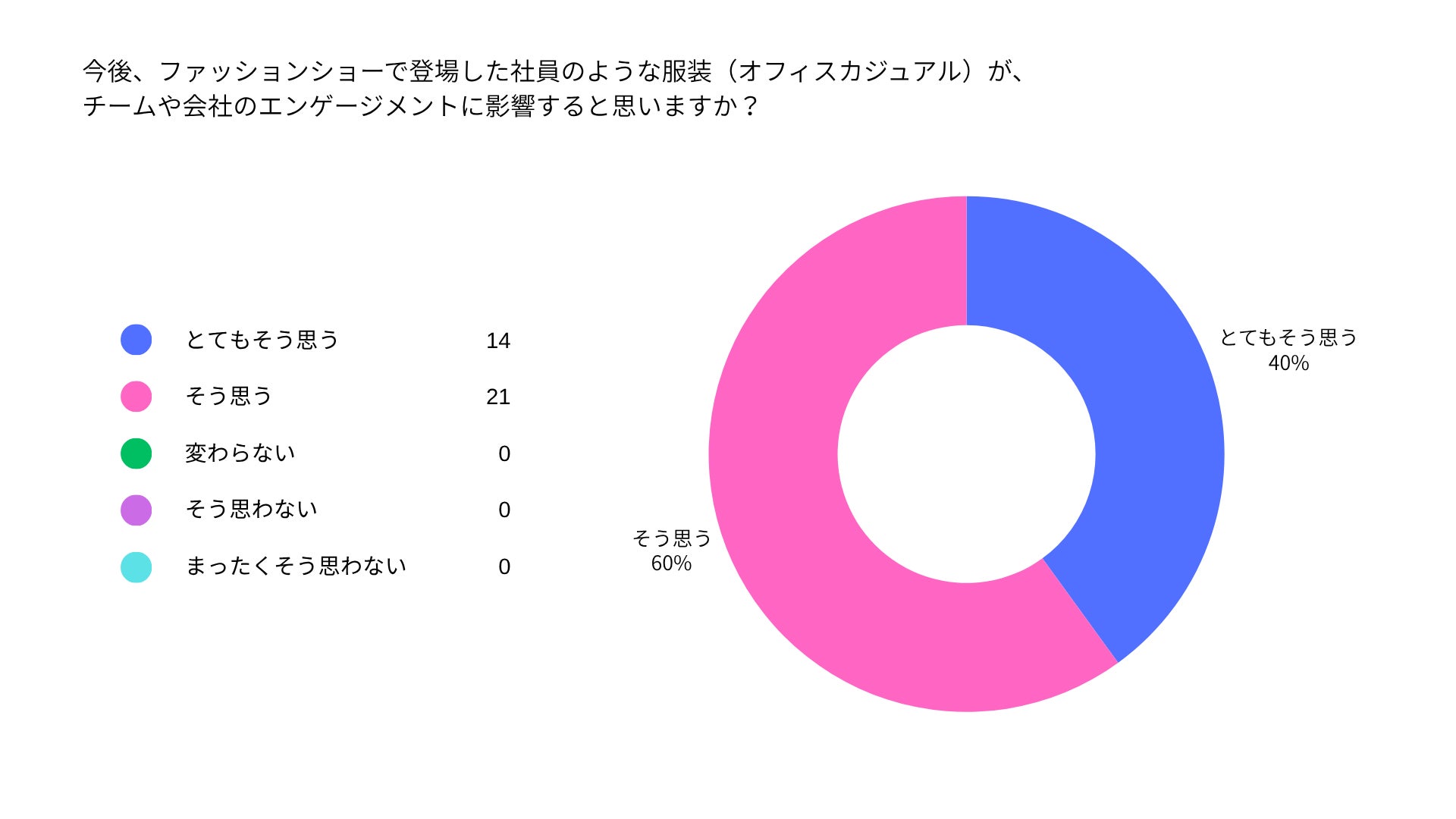 本ワークショップの実施により、オカムラ社員の服装への悩みを解消し、企業のダイバーシティ推進、フラットな組織風土の醸成への確かな一歩となりました。