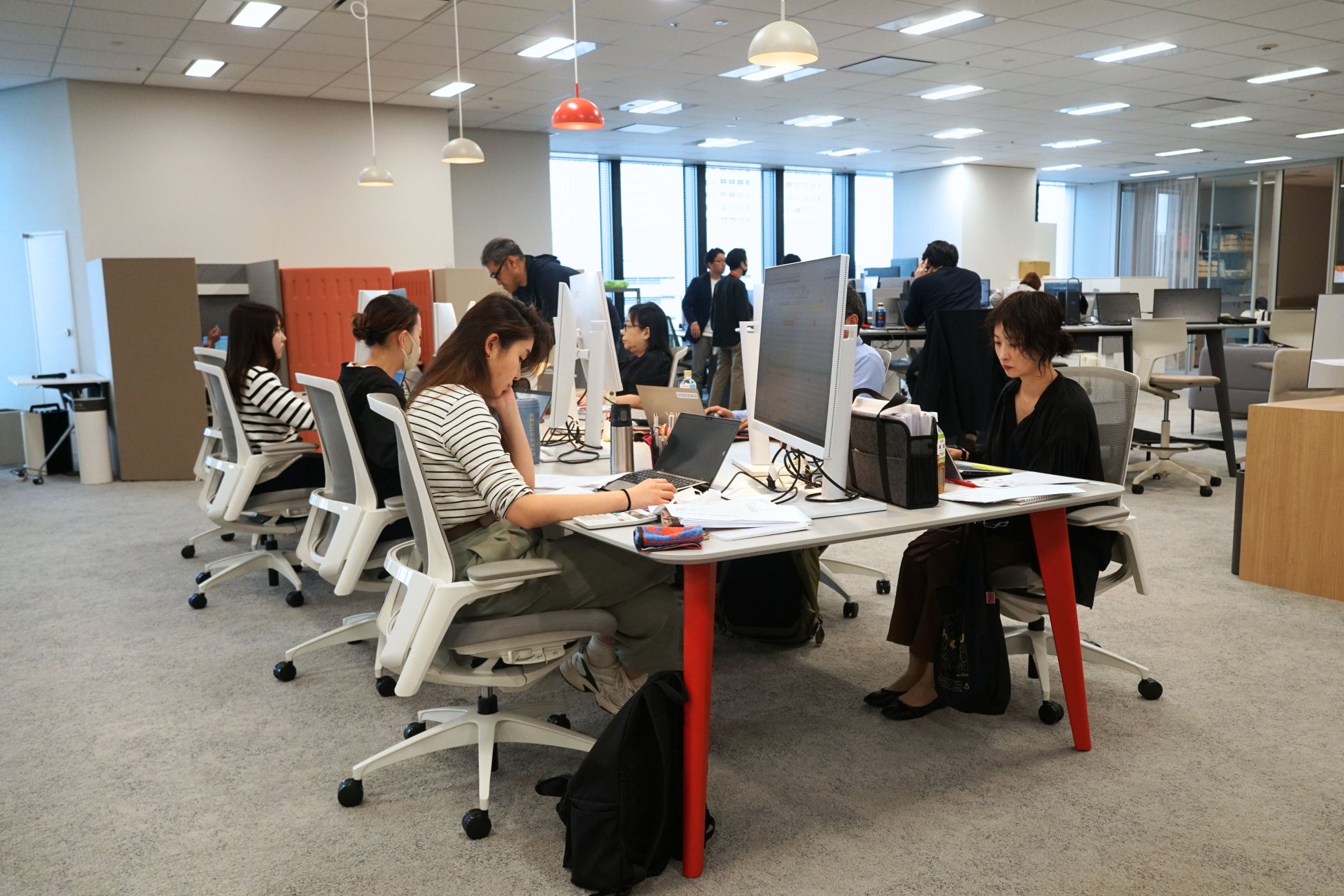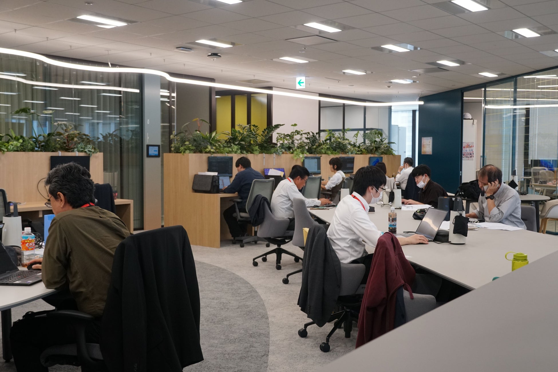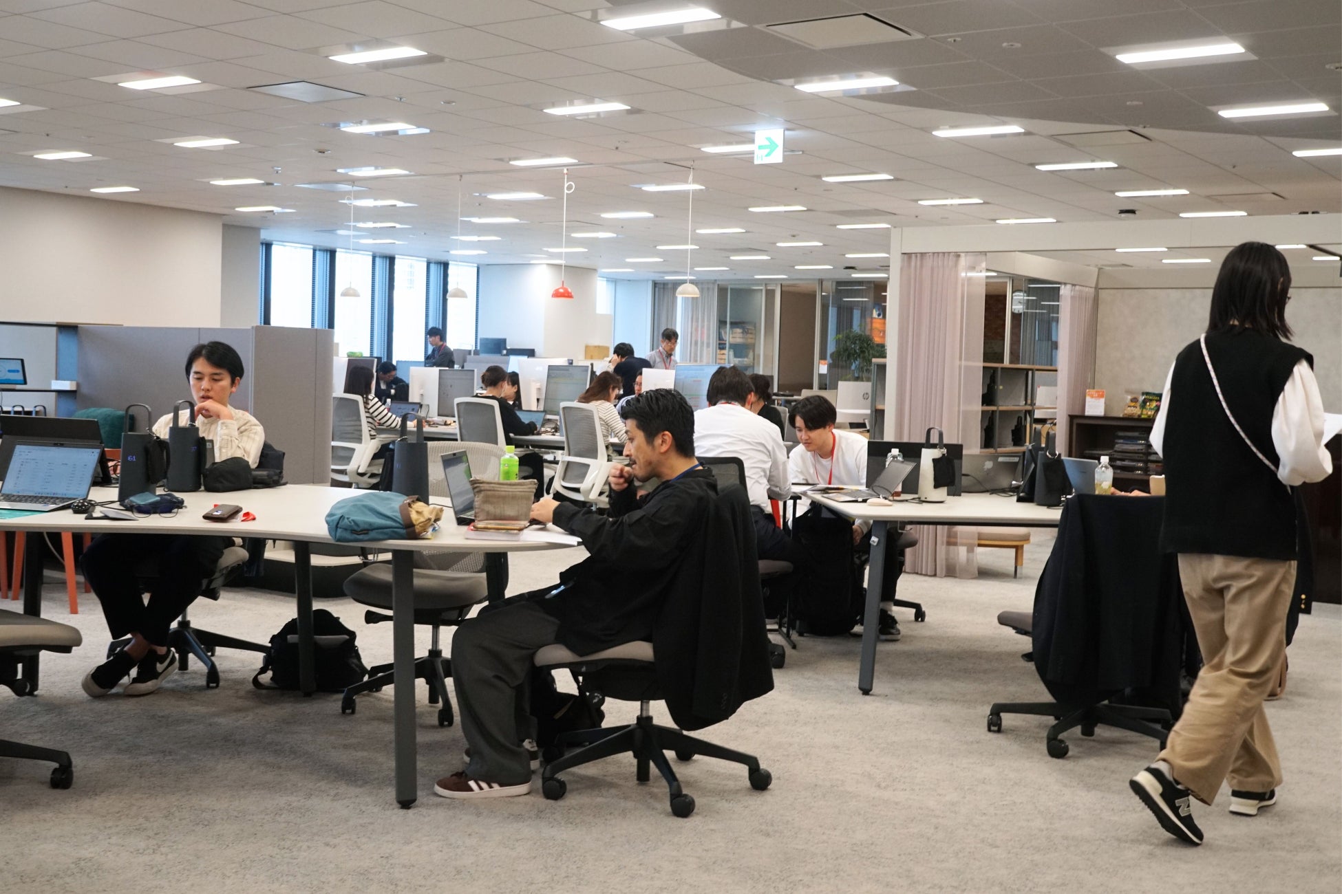 オフィス環境事業部門:カットソーや、スニーカーなど、カジュアルな服装の社員も。