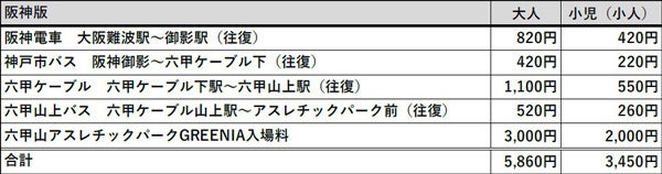 阪急版: 阪急全駅(神戸高速線を除く。)から阪急六甲駅までの往復乗車及び下記の共通区間