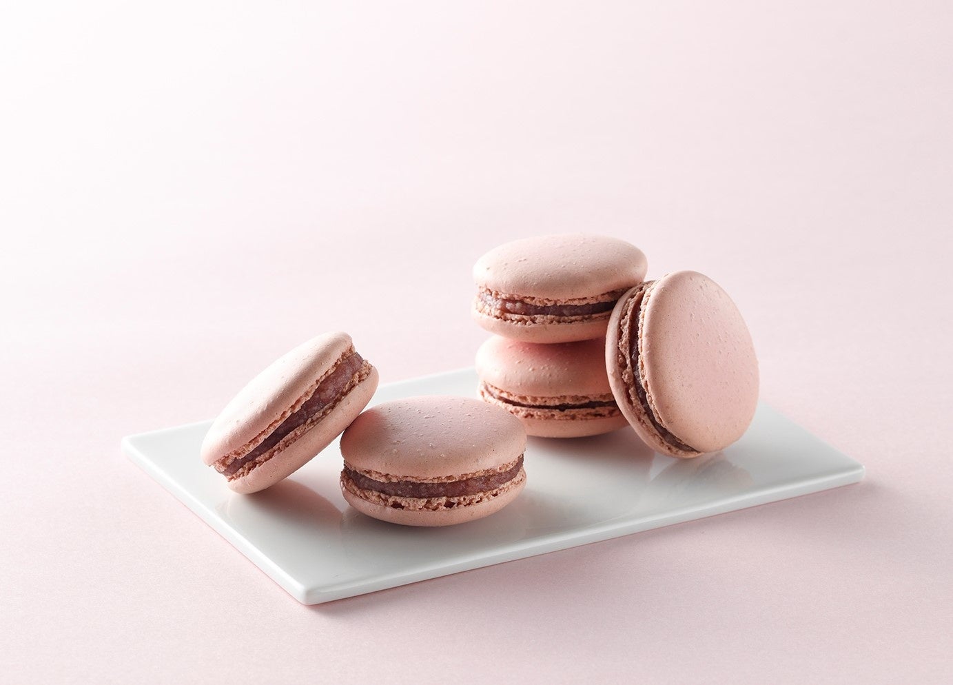 優美な香り漂うジャスミンのマカロン。ピーチのコンフィチュー ルをサンドした上品な味わい。