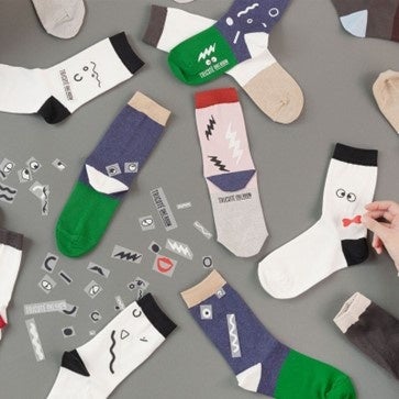 転写プリントモチーフを自由に組み合わせて靴下をデザインする、<TRICOTÉ>のワークショップを開催。さまざまなモチーフを組み合わせて、世界にひとつのオリジナル靴下が作れます。ご家族やご友人と楽しめるユニセックスサイズ(23〜27cmの1サイズ)をご用意。ギフトにもおすすめです。