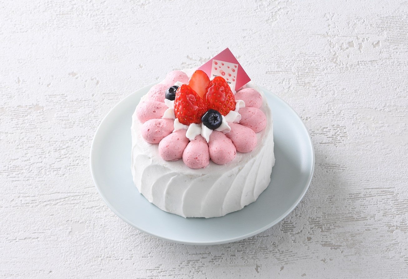 豆乳と苺、2種のクリームで描いたガーベラ。グルテンフリーの しっとりスポンジで苺とブルーベリーをサンド。