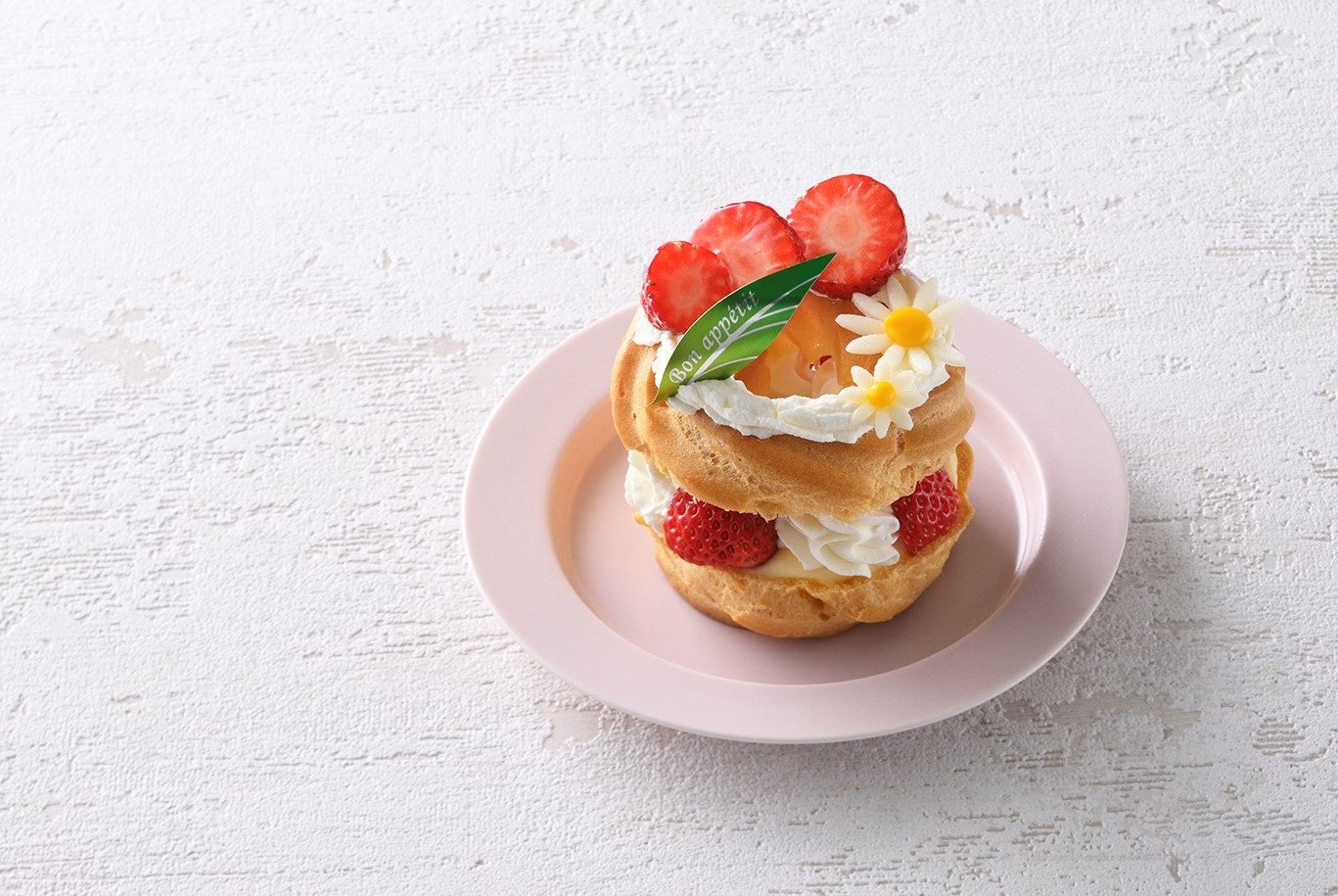 苺とデイジーを添えた、フランスの伝統菓子「パリブレスト」。キュートな美味しさを大切な方にも。