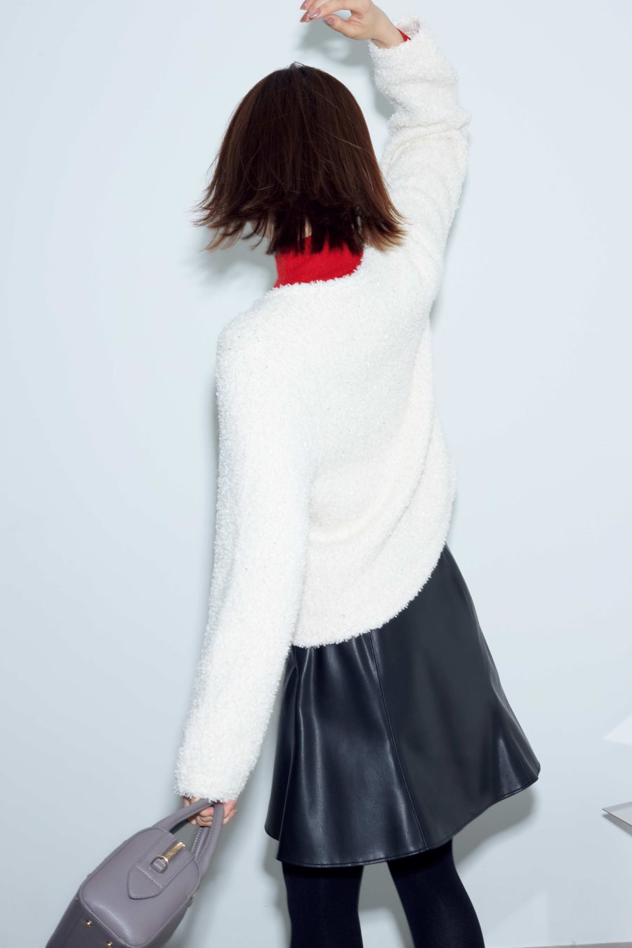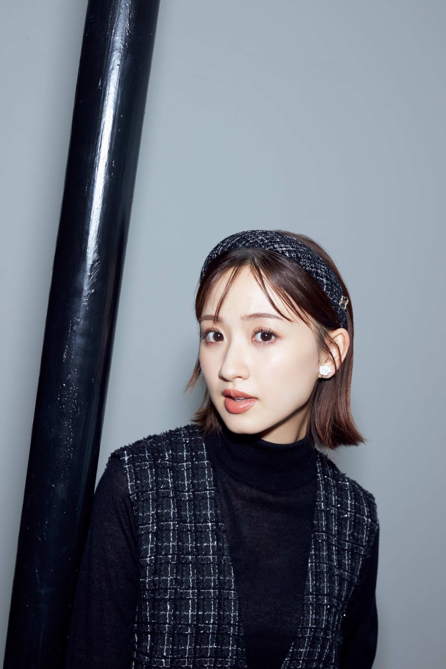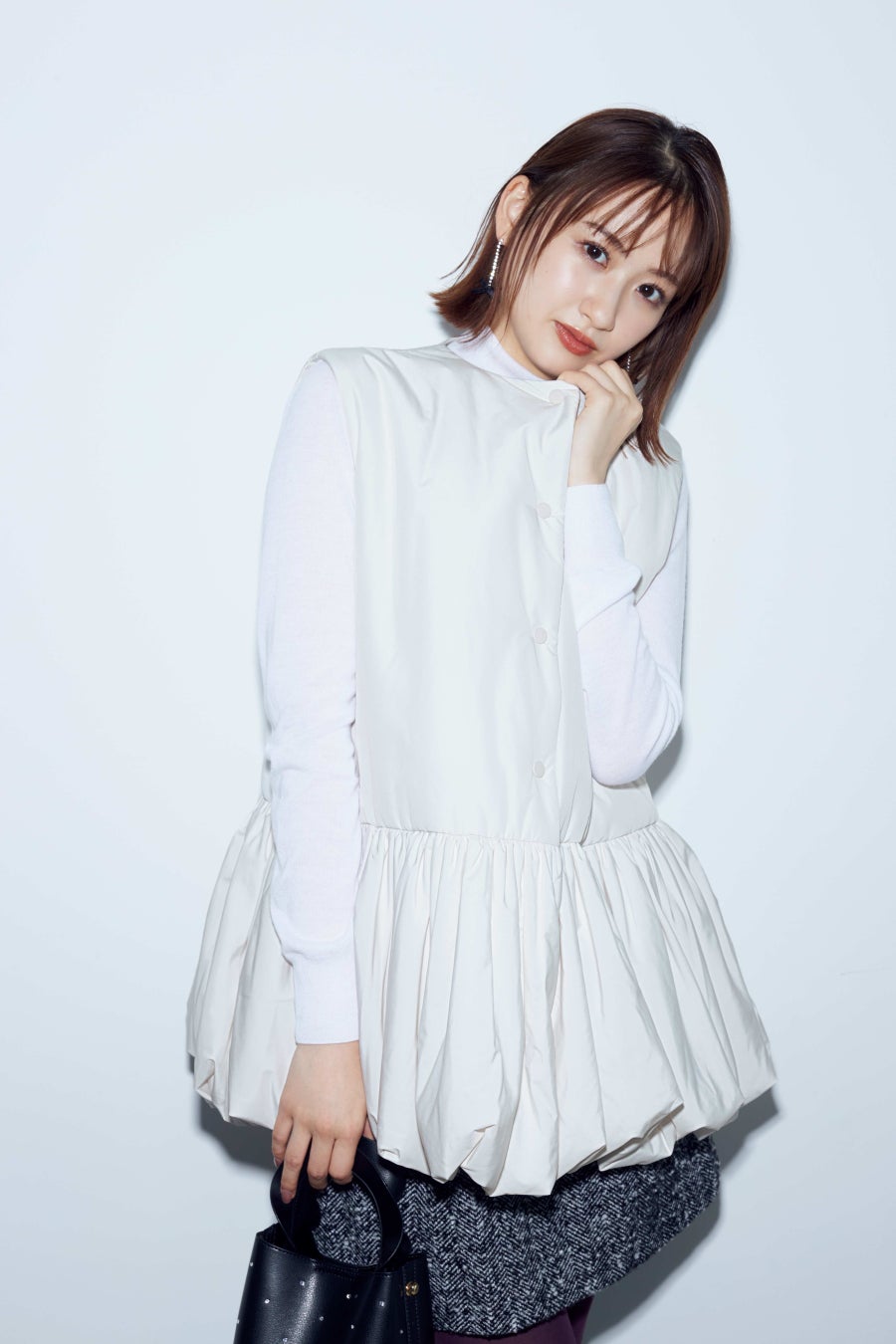 ブーツやタイツが味方になる季節にこそ取り入れたいミニ丈ボトムを、品位ある佇まいで魅せてくれました。