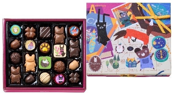 冒険の計画を練るポポル達が描かれたパッケージにバラエティに富んだチョコレートを詰め合わせました。
