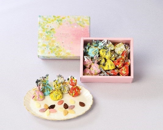 バレンタイン仕様の色鮮やかな5種類の巾着が4個ずつ入っています。