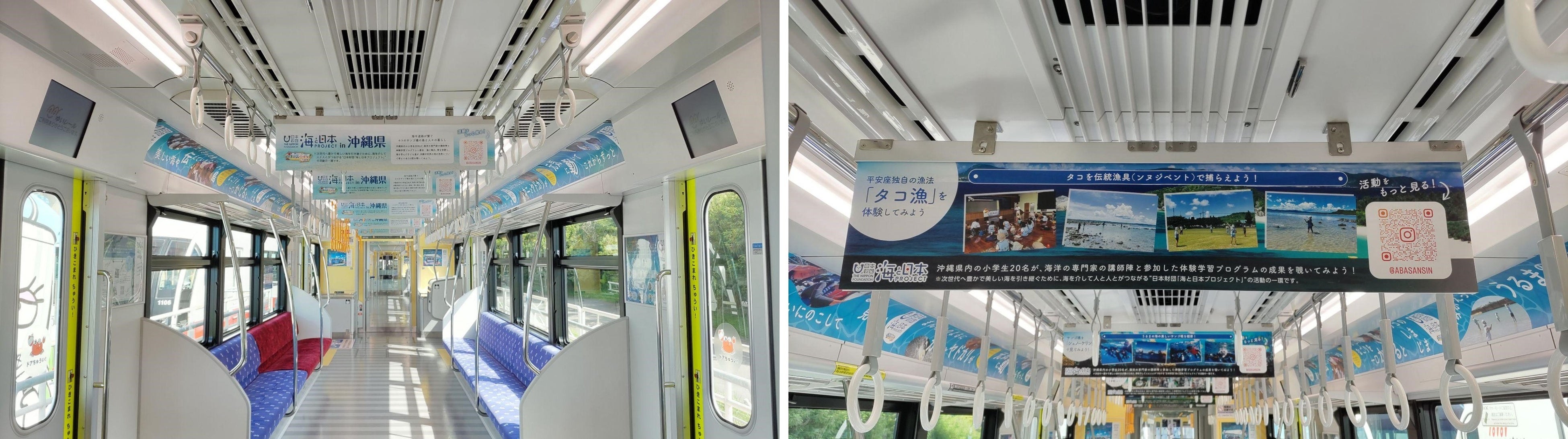 【海と日本PROJECT×沖縄都市モノレール】特別車両が運行開始 子どもたちの学びやメッセージが車内のポスターに