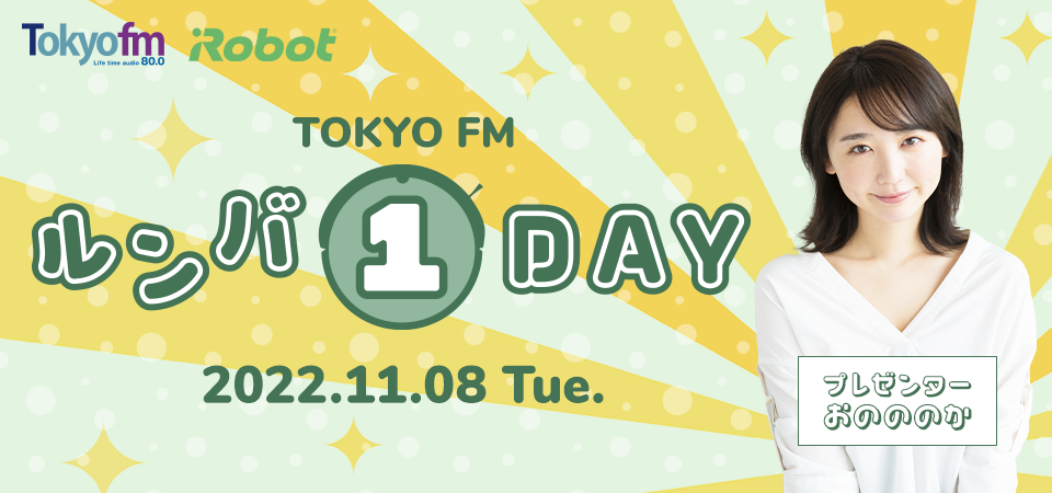TOKYO FMでは、11月8日(火)、おのののかがプレゼンターとなり、「TOKYO FM ルンバ1DAY」をお届けします。おのののかが『ONE MORNING』~『Skyrocket Company』までの6つのワイド番組に出演し、お掃除のお悩みに答えたり、ルンバのおすすめの使い方などをご紹介していきます。番組では現在、「お掃除のお悩み」、「ルンバについて知りたいこと」を募集しています。(応募は特設サイトから:https://www.tfm.co.jp/f/roomba1day/message)メッセージを寄せてくれた方のなかから抽選で3名様に「ルンバ i2」をプレゼントいたします。どうぞお楽しみに。