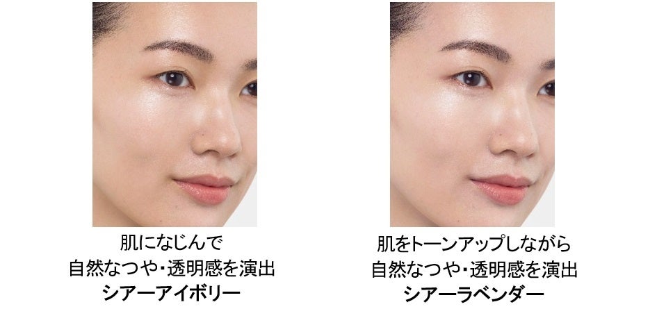 色調は肌になじんで自然なつや・透明感を演出する「シアーアイボリー」と、肌をトーンアップしながら自然なつや・透明感を演出する「シアーラベンダー」の2色を展開します。