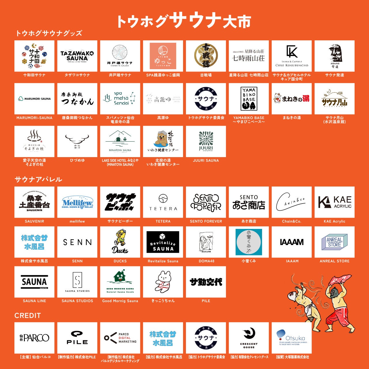 株式会サ水風呂/PILE/SENN/DUCKS/Revitalize Sauna/DOMA48/小菅くみ/IAAAM/ANREAL STORE/SAUNA LINE/SAUNA STUDIOS/GOOD MORNING SAUNA/きっこうちゃん (※順不同)