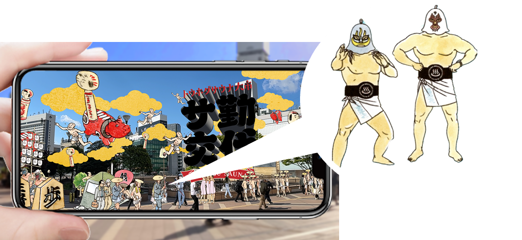 昨年大好評を博した仙台駅前ペデストリアンデッキをサ勤交代キャラクター達が行脚するARコンテンツがリニューアル!本年は「サウナマンBros.」が巨大になって登場するかも!?