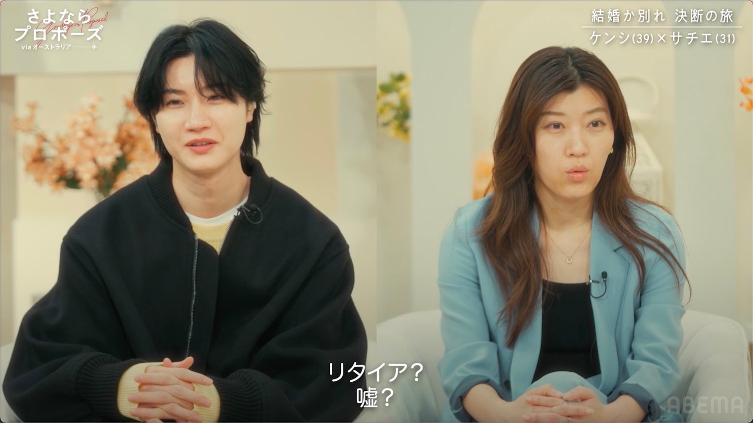 新しい未来のテレビ「ABEMA(アベマ)」は、「ABEMA」オリジナル結婚決断リアリティ番組『さよならプロポーズ via オーストラリア』の第3話を、2026年3月19日(木)夜9時より放送いたします。