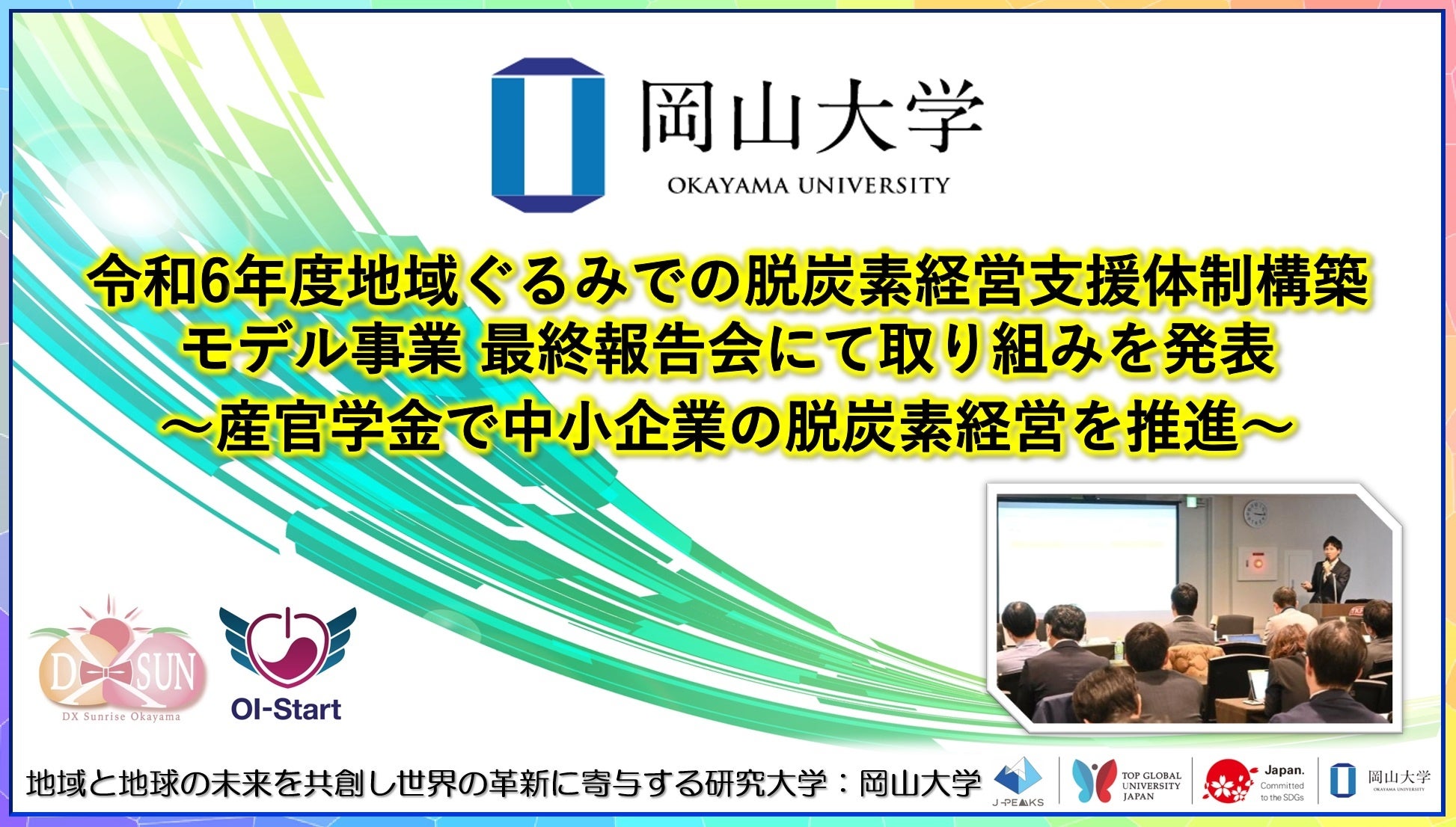 【岡山大学】令和6年度地域ぐるみでの脱炭素経営支援体制構築モデル事業 最終報告会にて取り組みを発表 ~産官学金で中小企業の脱炭素経営を推進~