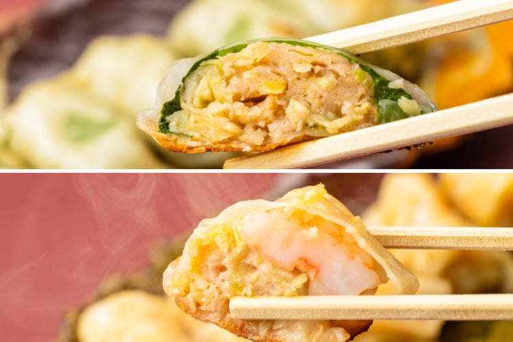 紫蘇餃子(1人前5個 420円)、海老餃子(1人前5個 480円)
