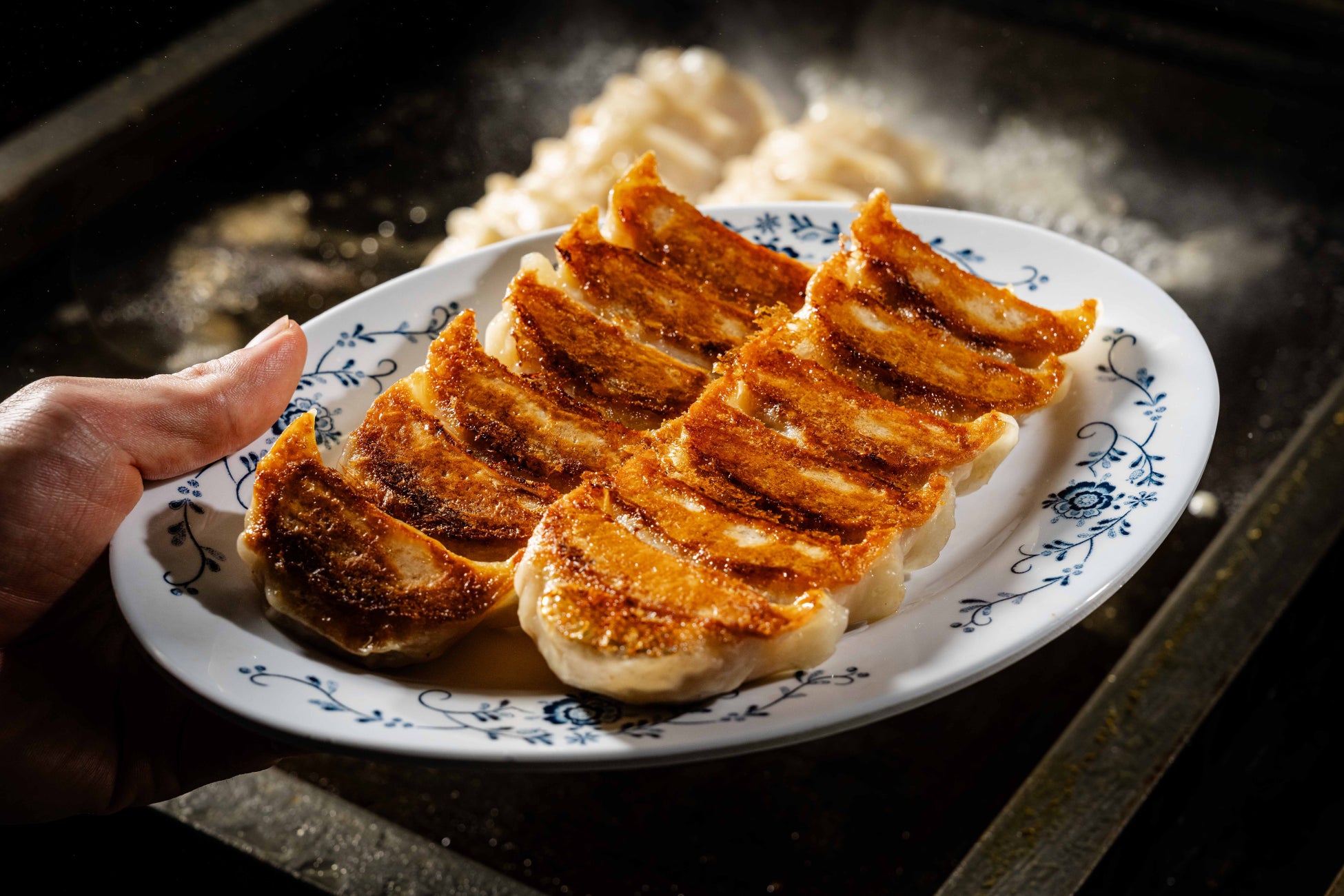 ふんわり柔らかい餡に食感を活かしたたっぷりのキャベツ、大きめのにんにくと生姜のアクセントが効いた、濃いめの味付けが特長です。カリっと焼き上げた皮と、ふわっとした餡の中から顔をのぞかせる野菜たち。食べて美味しく、見て美味しい餃子をお届けします。