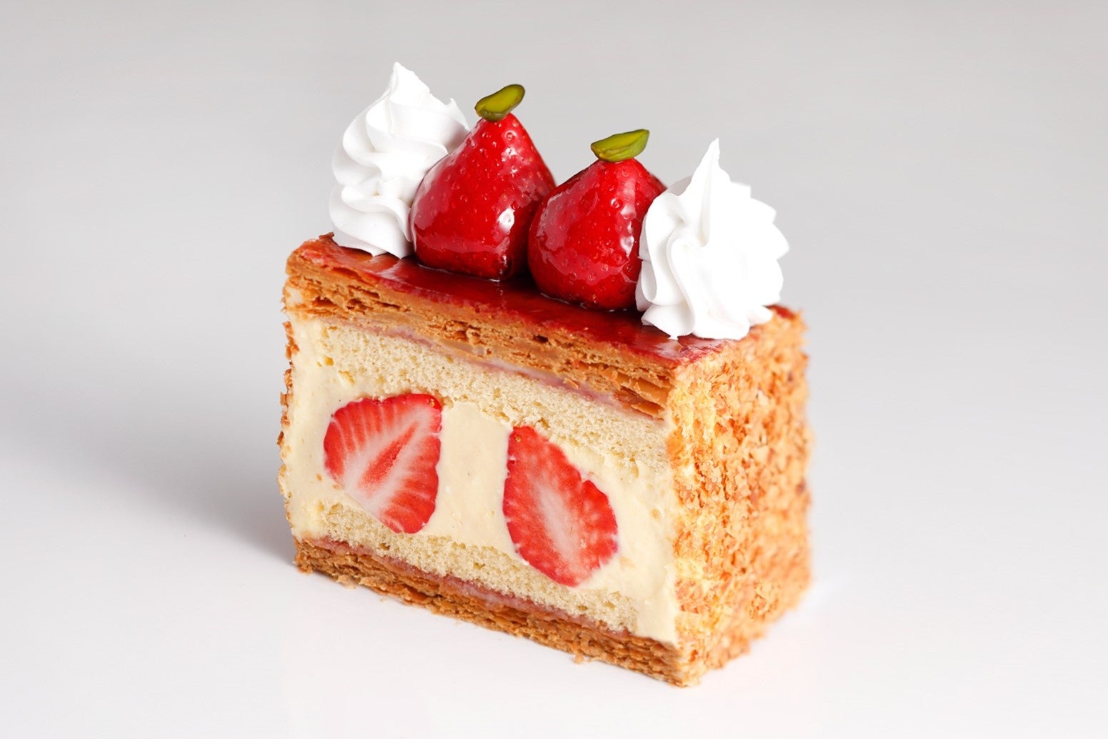 こちらのハンカチは『ナポレオンパイ』とのセットで販売いたします。老若男女幅広い世代から愛されるフォトジェニックな断面美が魅力的なナポレオンパイとご一緒に、非日常の空間でゆったりとしたひと時をお愉しみください。