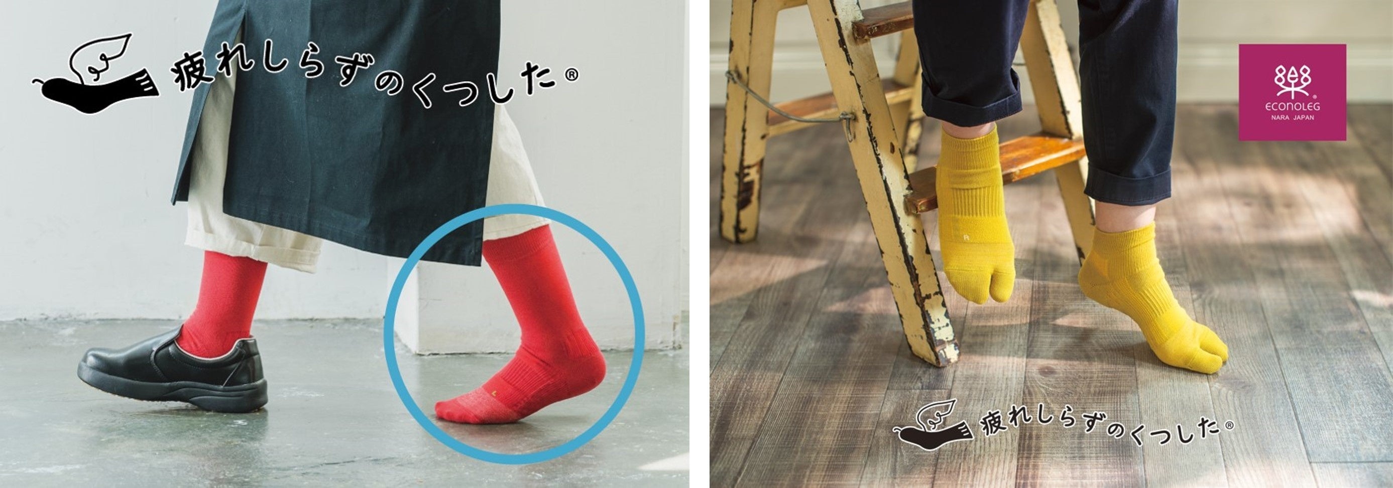 「~靴下でくらしが変わる~暮らしをもっと楽しく、もっと楽に」、靴下職人の創意で暮らしを変える靴下です。靴下はみんなが毎日履くもの、たくさん歩く足を支え、やさしく足を包むものです。エコノレッグの靴下は、ライフスタイルや、ご利用シーンの用途に合わせ最適な製品を開発しています。自社にて企画、開発、製造を行い、すべての人の暮らしにお役に立つこだわりの商品を提供します。
