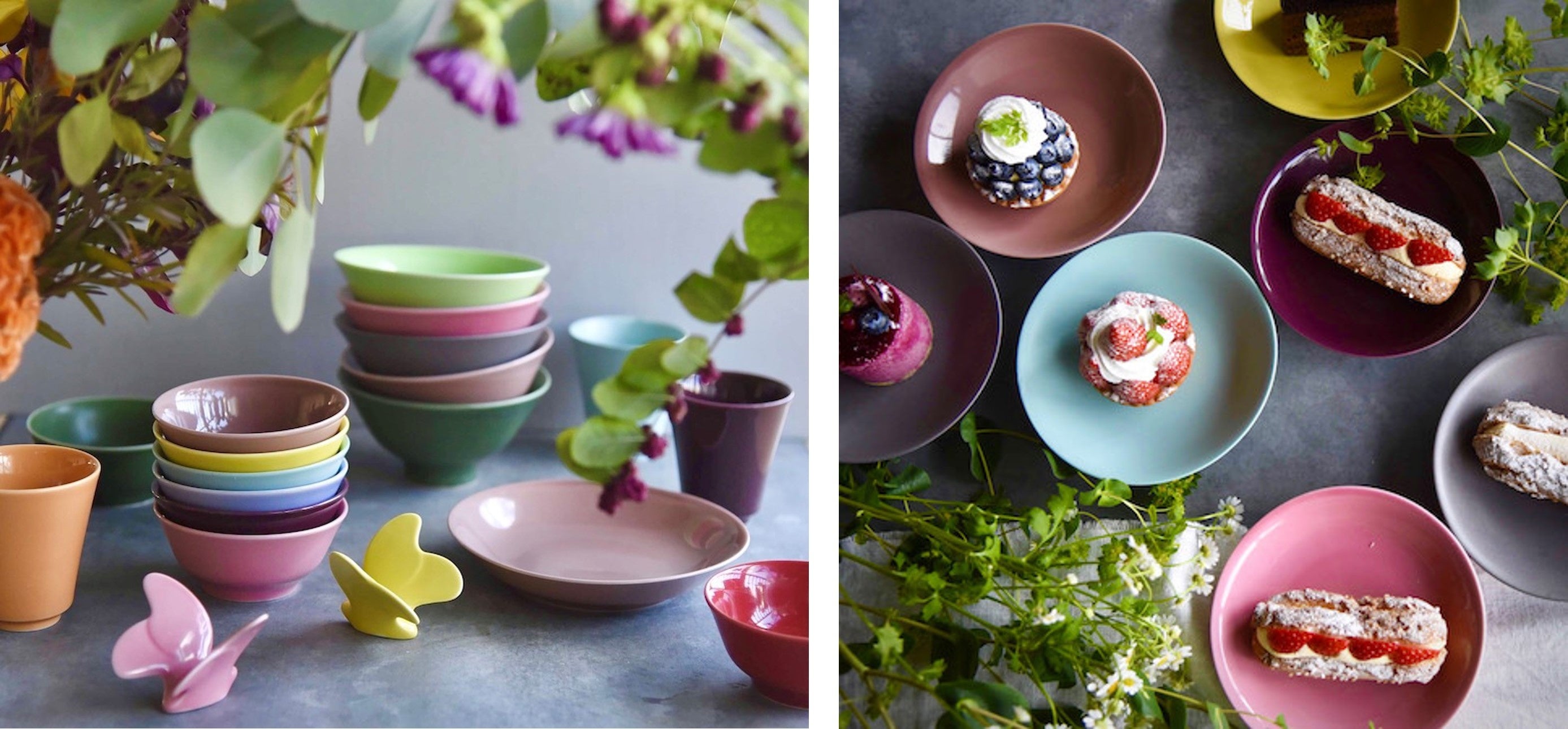 料理が映える波佐見焼。皿そのものの形や色が美しくオシャレなことはもちろん、「料理を引き立たせる色と形」となるようにデザインしました。長崎県波佐見焼町で、1つひとつ手づくりで釉薬をかけてつくられる、日本の伝統色11色、8型ご用意しています。