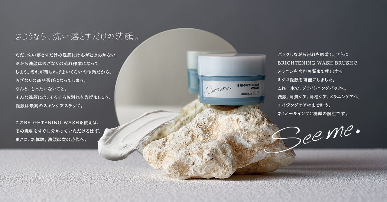 ブランドコンセプトは「See me.」本来のわたしらしさを手に入れる、新しいスキンケアの価値。新しい時代に、新しいSHIKARIから。「さようなら、洗い落とだけの洗顔。」 パックしながら汚れを吸着し、さらに洗顔ブラシでメラニンを含む角質まで排出する、ミクロ洗顔。これ1本でブライトニングパック、洗顔、角質ケア、角栓ケア、メラニンケア、エイジングケアまで叶う、新!オールインワン洗顔パック。