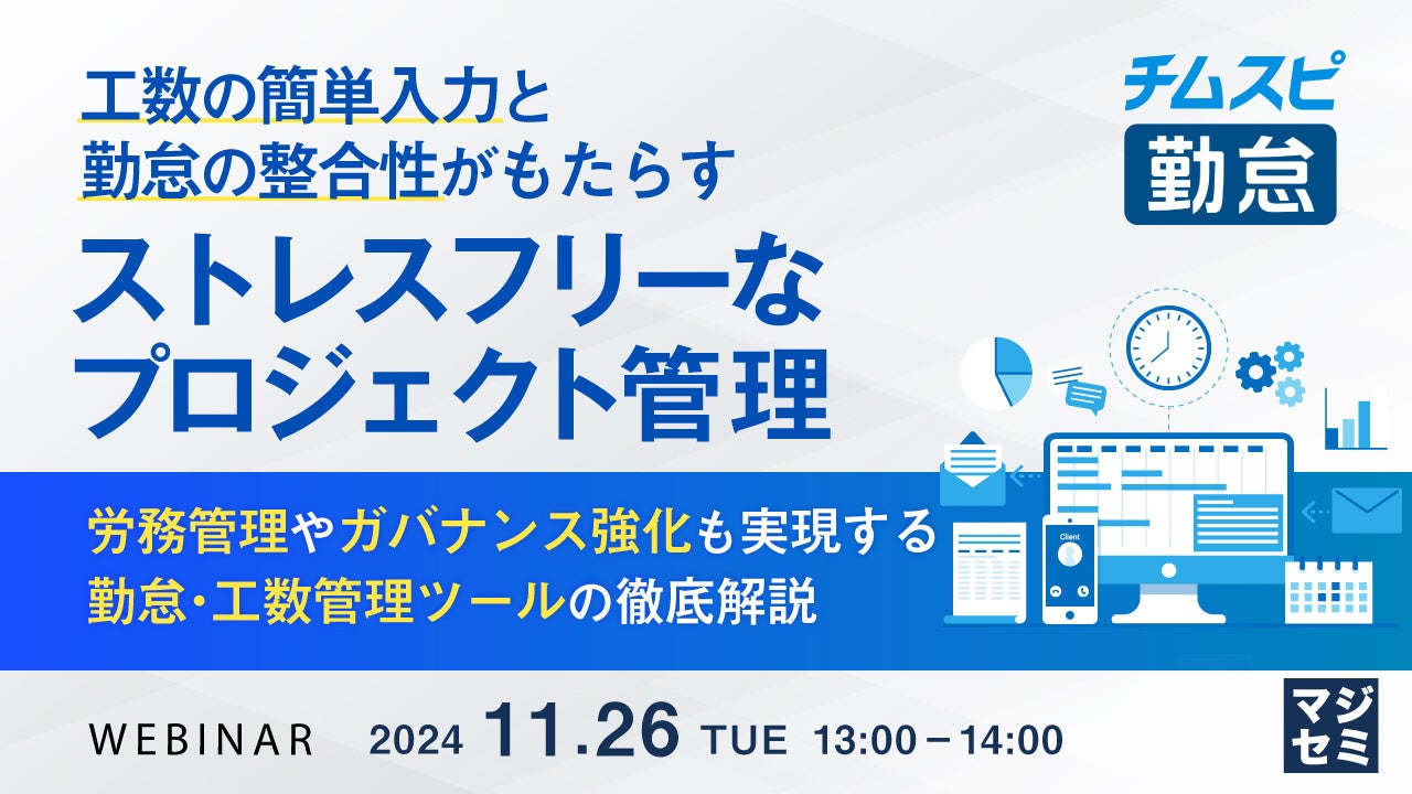 マジセミ株式会社は「工数の簡単入力と勤怠の整合性がもたらす、ストレスフリーなプロジェクト管理」というテーマのウェビナーを開催します。