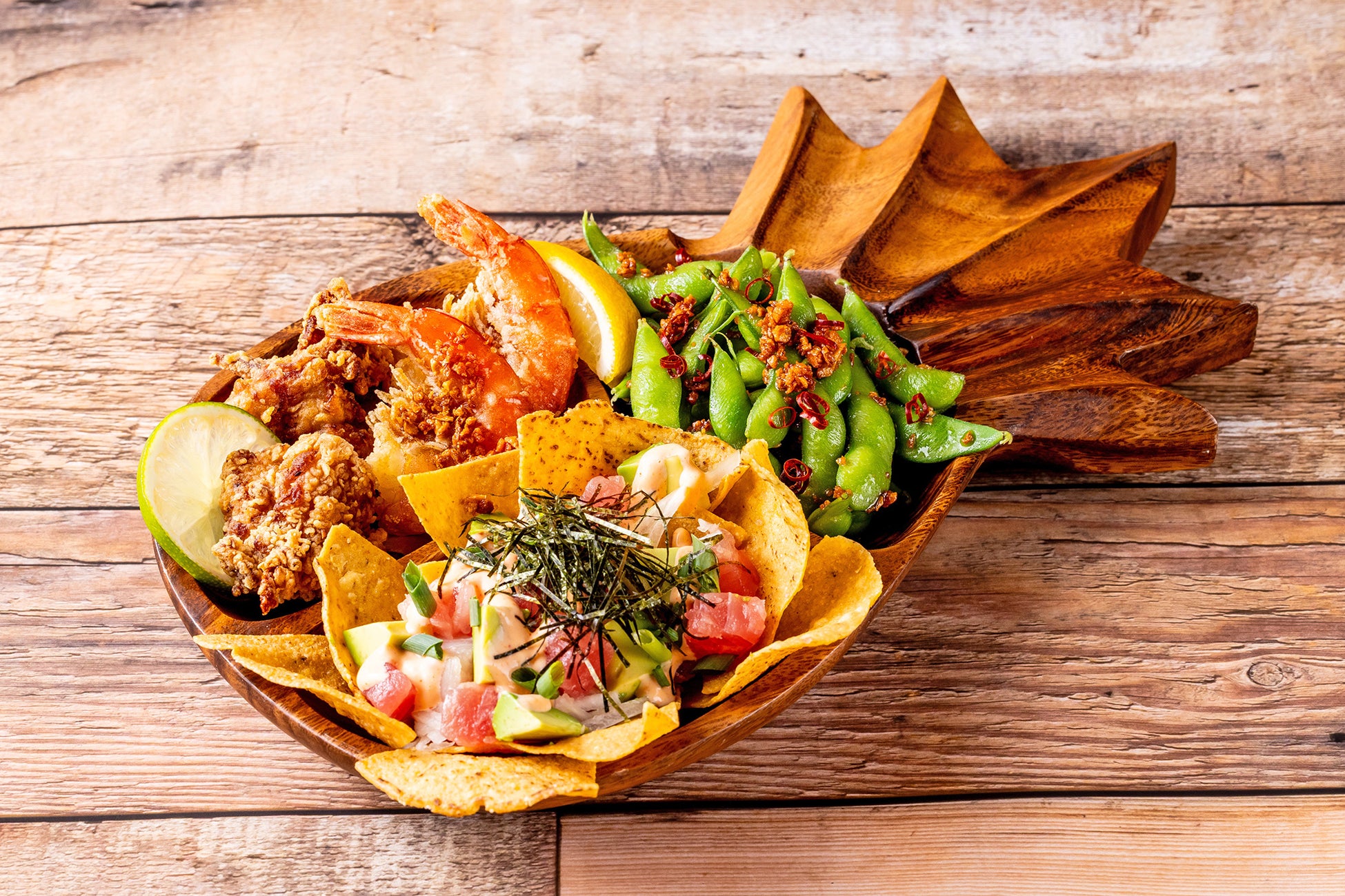 テーブルに運ばれてきた瞬間、歓声が上がるような華やかなメニューをご用意しました。シェアして食べる楽しさ、描いて遊ぶ体験など、アロハテーブルならではの食体験をお届けします。