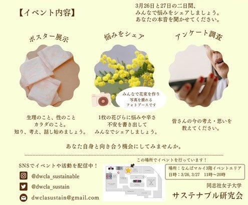 たかが生理だなんて言わないで~大切なココロとカラダを守るために~ 同志社女子大学サステナブル研究会がなんばマルイでイベントを開催