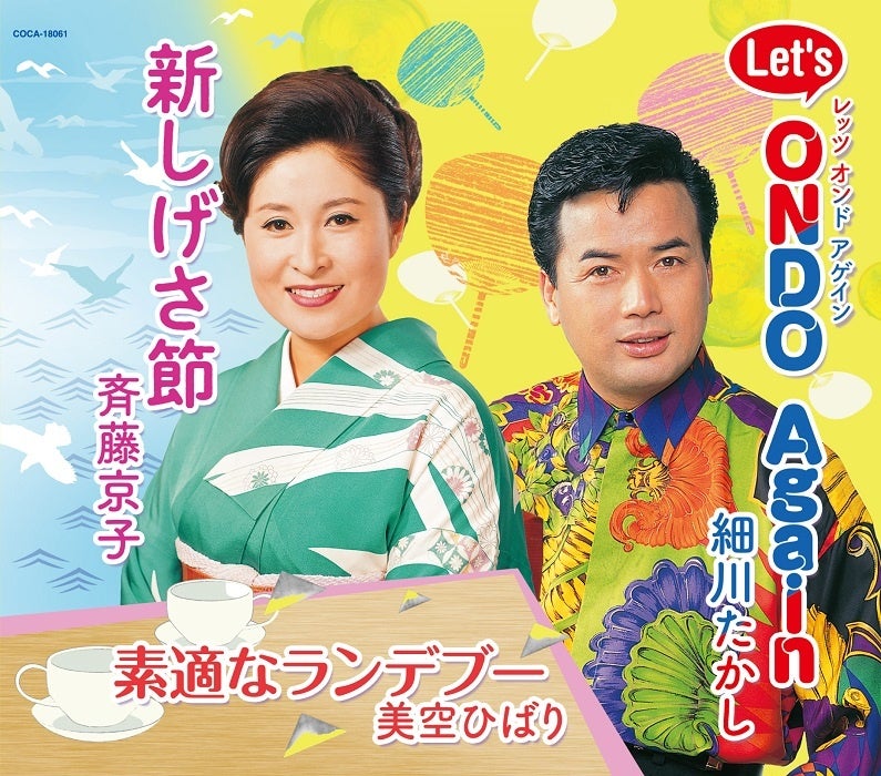 「新しげさ節/Let's Ondo Again(レッツ オンド アゲイン)/素適なランデブー」では、隠岐の情緒たっぷりの民謡を昨年逝去した斉藤京子が唄った「新しげさ節」、細川たかしの軽快で心躍る音頭「Let's Ondo Again(レッツ オンド アゲイン)」に、美空ひばりのリズム歌謡「素適なランデブー」を収録している。