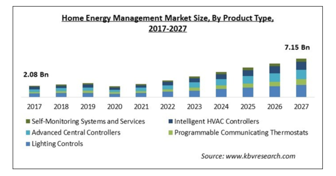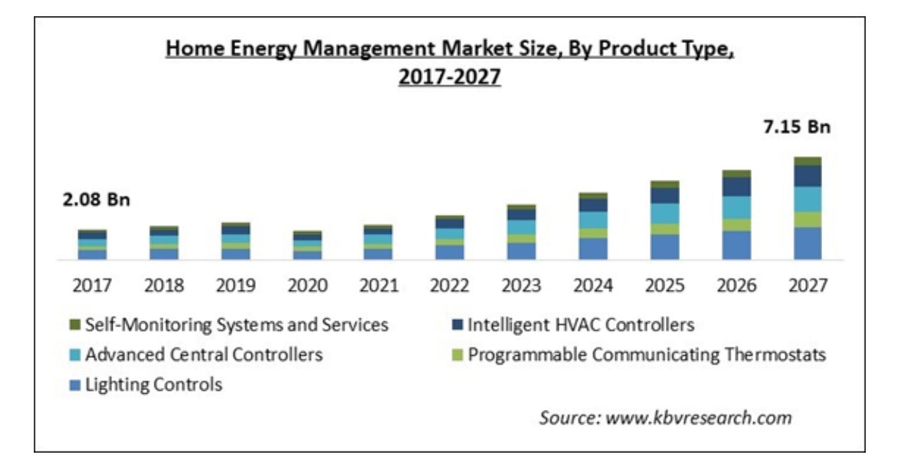 家庭用エネルギー管理の市場規模は、2027年には71億5,736万ドル規模に到達すると予測されています。