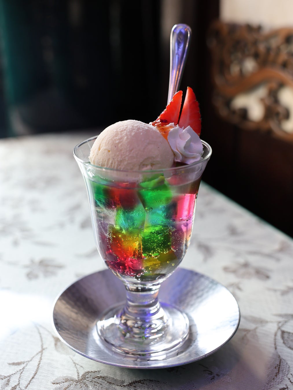メニュー誕生から50周年を迎えた同店の看板メニューのゼリーポンチが、「日本橋のはちみつ」を使用した特別バージョンで登場。