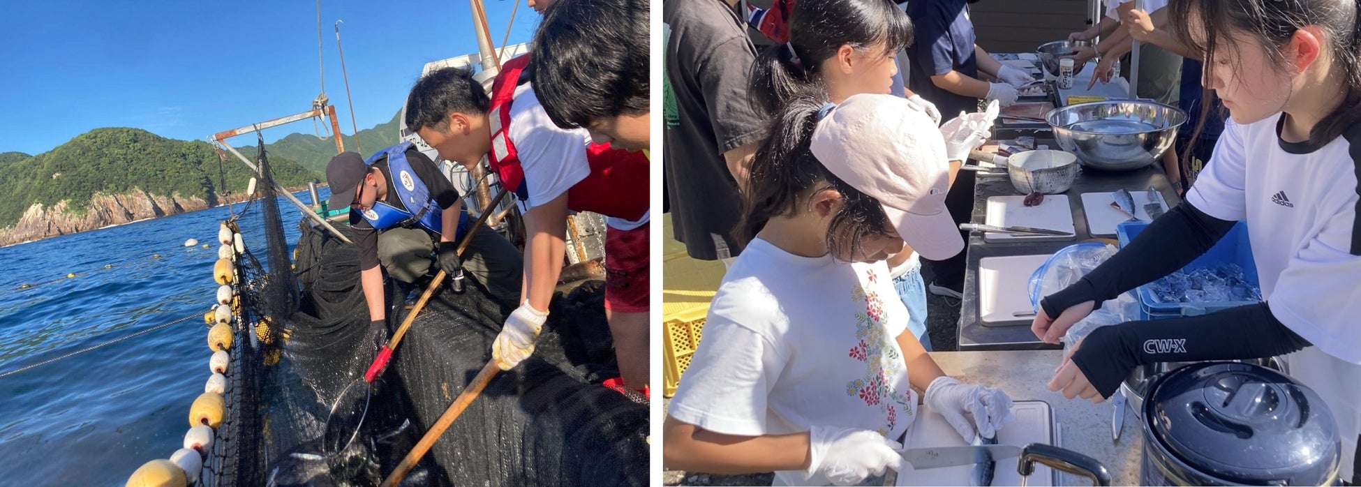 定置網漁体験と高校生が教える魚さばき体験