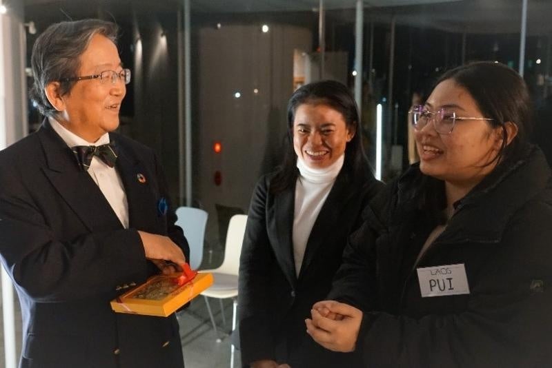 1月20日は、本学共育共創コモンズ(OUX)での留学説明会、ナカシマプロペラ株式会社及び帝人ナカシマメディカル株式会社の上道工場見学、那須保友学長を含む本学関係者との懇親会などを行いました。留学説明会では、本学の留学生が、自身の学校生活の体験を交え、日本留学の魅力を説明しました。受賞者からは、研究室やインターンシップの話題を中心に次々と質問がありました。また、工場見学や懇親会には、受賞者と同じ国籍の本学留学生も参加し、学生同士の交流を通じて、具体的な日本留学のイメージを深める貴重な機会となった様子でした。