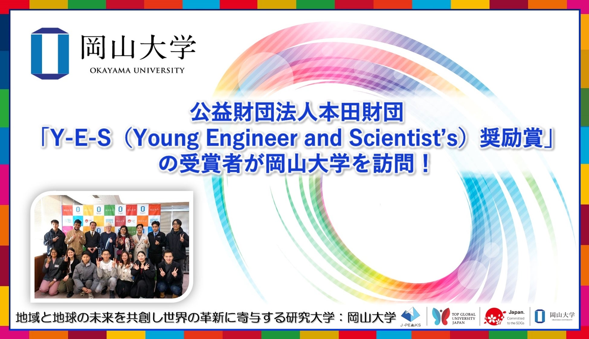【岡山大学】公益財団法人本田財団「Y-E-S(Young Engineer and Scientist's)奨励賞」の受賞者が岡山大学を訪問!