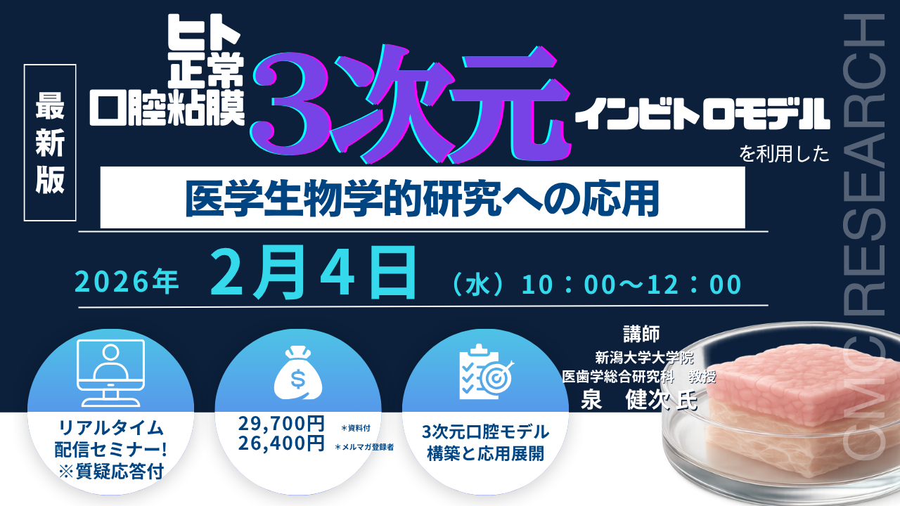 【ライブ配信/ZOOM】「ヒト正常口腔粘膜3次元インビトロモデルを利用した医学生物学的研究への応用」セミナー開催!2026年2月4日(水)主催:(株)シーエムシー・リサーチ