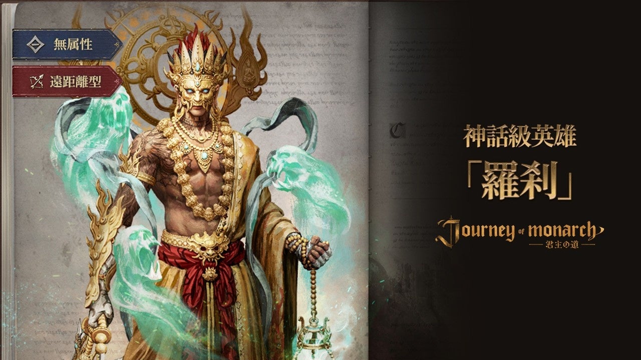 本日のアップデートで、新たな神話級英雄「羅刹」が登場しました。「羅刹」は無属性・遠距離型の英雄で、攻撃対象を中心とした範囲攻撃と属性防御力減少、攻撃速度減少などのデバフ効果を付与するクリティカル スキルを所持しています。
