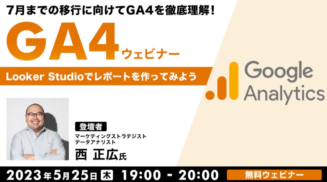 【Web業界】GA4のレポートをLooker Studioで作ってみよう 5/25(木)「7月の移行に向けて徹底理解!GA4ウェビナー」(無料)を開催!