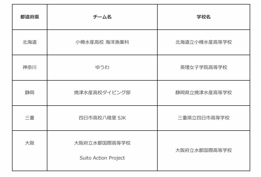 今回の敗者復活選考に漏れたチームだけでなく、さまざまな海の課題解決に取り組んでいる高校生(1人以上のチーム、部活動など)が自分たちの活動を発信し、全国の仲間と繋がるプラットフォームとして活用していただきたいと考えています。