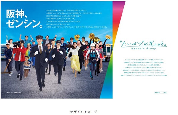 多様な事業を営む阪神グループの従業員が、お客様の“たいせつ”とともに、一体となって前へと進んでいく、そして「あたたかさ・ほんまもん・先進性」を実体化し、「阪神ブランド」としてこれからもお客様にお届けしていく、という私たちの決意をビジュアルとコピーに込めて制作しました(今回のポスターには、阪神グループの従業員とともに、お客様にもご登場いただいております。)。