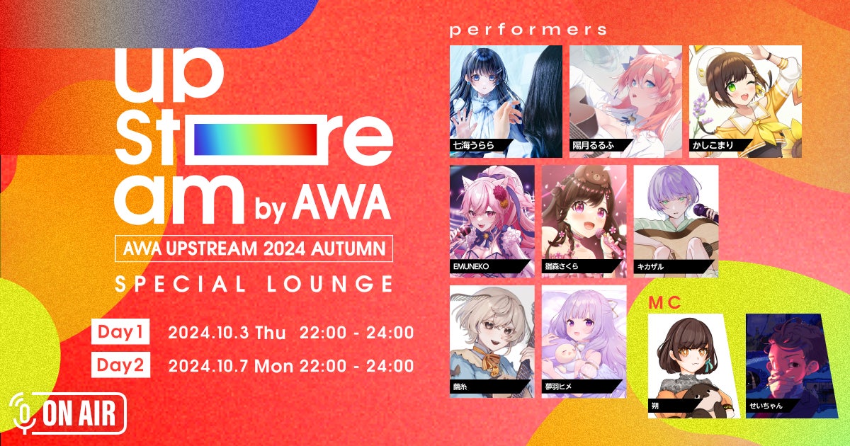 Vアーティストによるリアルライブ『AWA UPSTREAM 2024 AUTUMN』記念!出演者が2日間に渡って登場する特集ラウンジが開催決定!